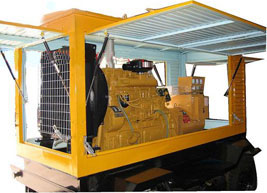 文安柴油发电机组/移动柴油发电机组设计独具创新,机动性高、重心低、制动安全、制造精良、外形美观。 文安拖车车架采用槽梁焊接成框架结构,节点选择合理、强度高、刚性好;同时装有钢板弹簧悬架结构;拖车采用高度可调节插销式牵引架,适用于各种高度牵引车;采用圆形钢管焊接直通式车轴,结构紧凑,安全可靠;车架四角设有机械式支撑装置,配备惯性行车制动、驻车制动和脱离应急制动,确保机组在各种状况下的安全;车架前端设有支撑轮,具备承受机组垂直载荷的功能的同时还具备导向功能;整车配备转向和刹车指示灯,同时装有尾灯标准插头